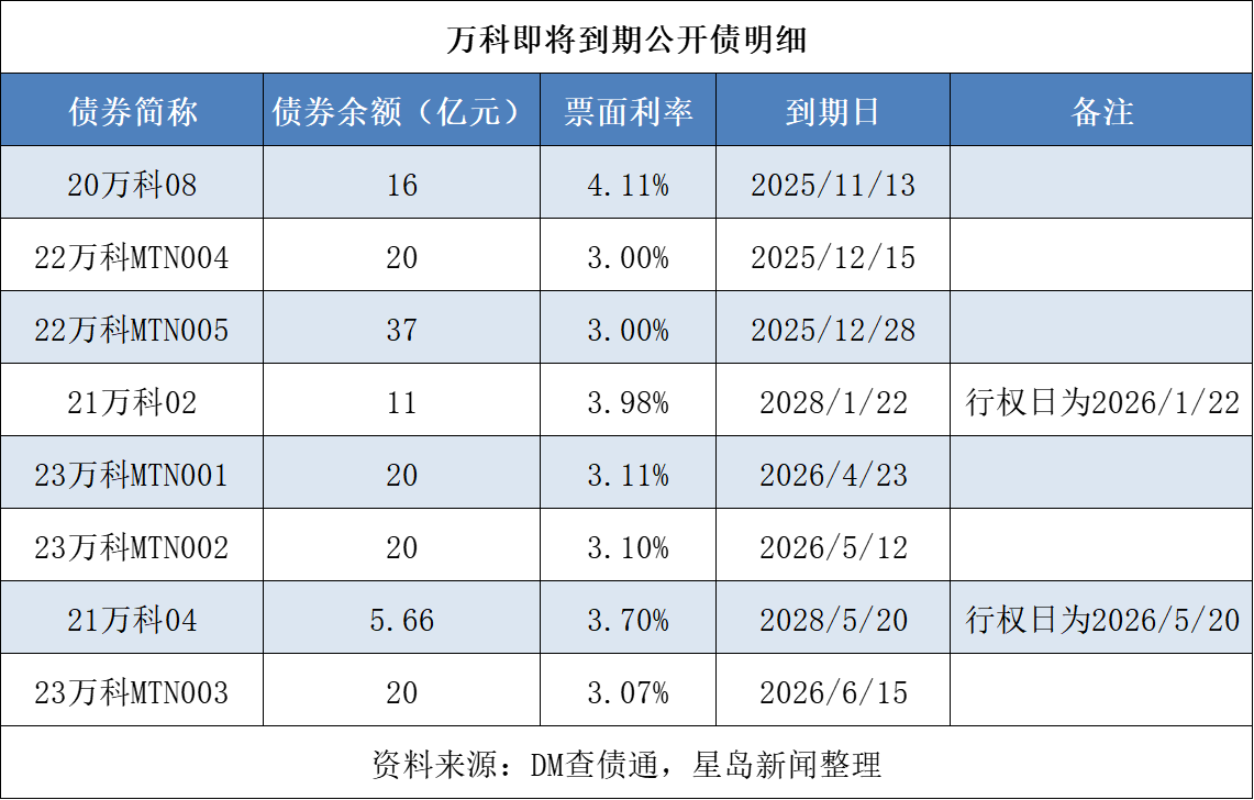 DM查债通显示,万科在12月有两笔债券到期,到期金额合计57亿元;2026年上半年还将有接近77亿元债券面临偿付压力。