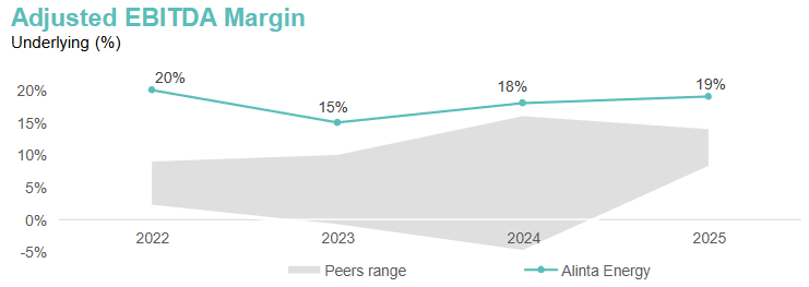 ▲Alinta集团经调整后EBITDA利润率表现,资料来源:胜科工业