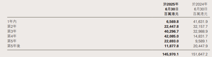 不仅如此,新世界发展还推动约达882亿港元的银行再融资,将银行贷款最高到期日延长至2028年。截至2025年6月底,公司综合债务净额同比减少35.44亿港元至1201.13亿港元,其中短期债务减少350亿港元至66亿港元。需要注意的是,公司账面现金继续下降至258.56亿港元,仍难言充裕。