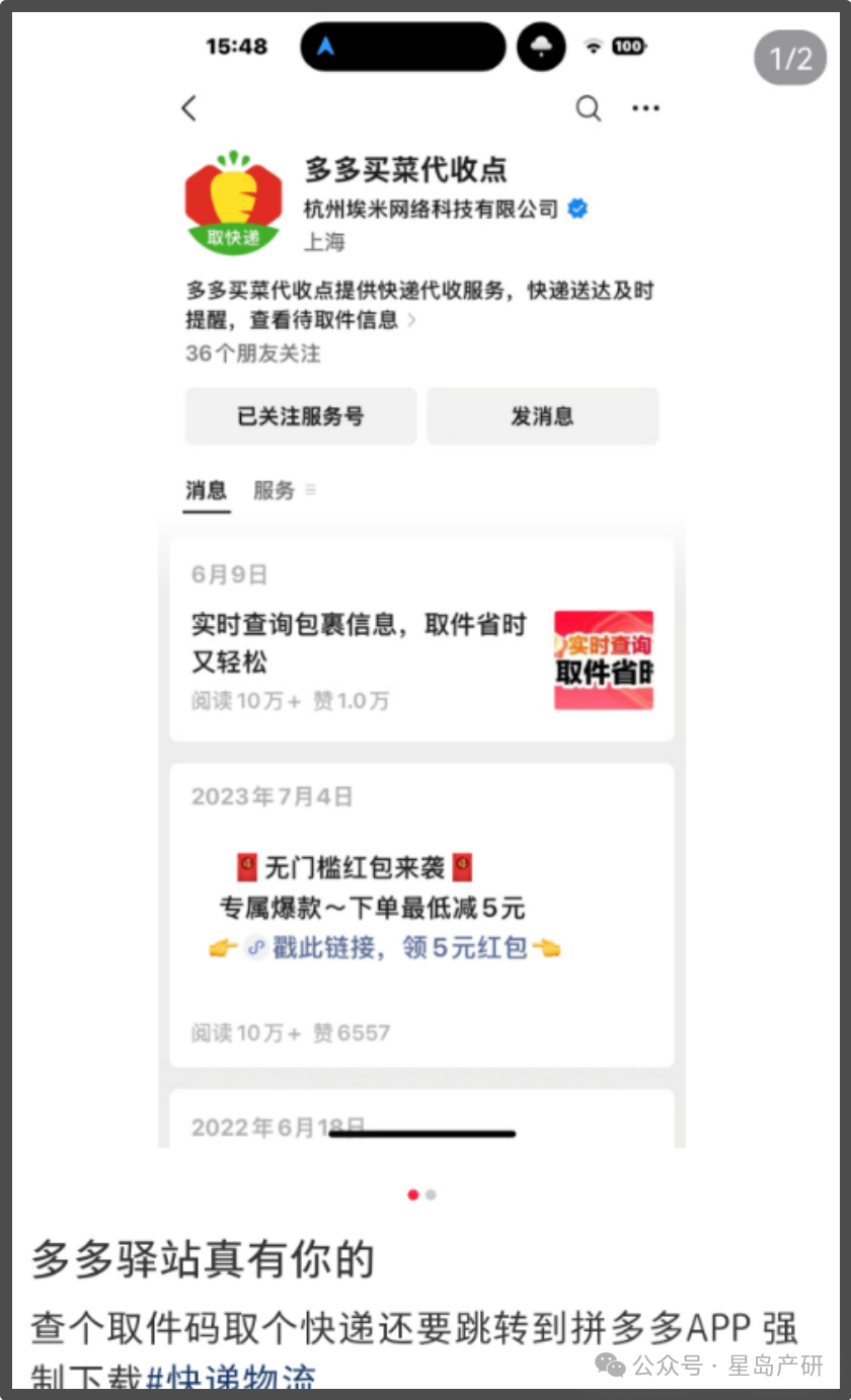 在国内互联网社交平台上,此前就曾有用户反映,称在微信查询多多买菜代收点取件码时,会出现需要跳转到拼多多APP等现象。