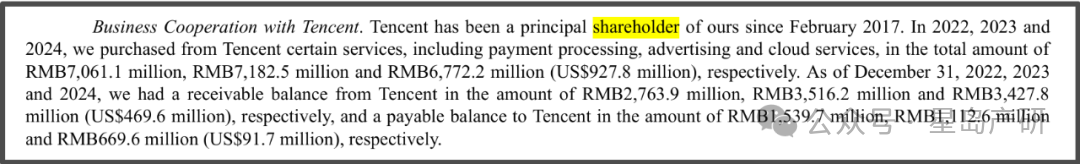 但此次案件却与以往不同。《星岛》查阅拼多多2024年财报发现,2022年—2024年,拼多多三年时间向腾讯下了约210.16亿元的服务采购单,包括支付处理、广告和云服务等。