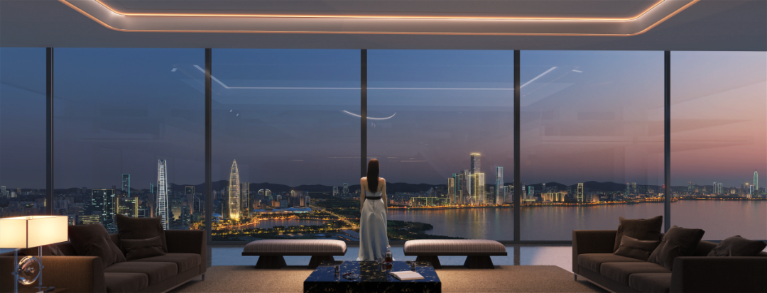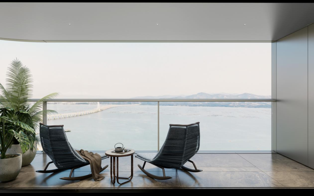 犹如一座漂浮于繁华之上的“空中绿洲”,中信城开信悦湾既保证了绝佳的观景视野,又规避了地面的喧嚣,营造出豪奢业主极为看重的私密性。“全景舱式”的户型设计以及平推窗与曲面屏转角窗的结合,实现客厅270°无柱环幕视野,将连绵海岸线、跨海大桥与香港群山尽收眼底。