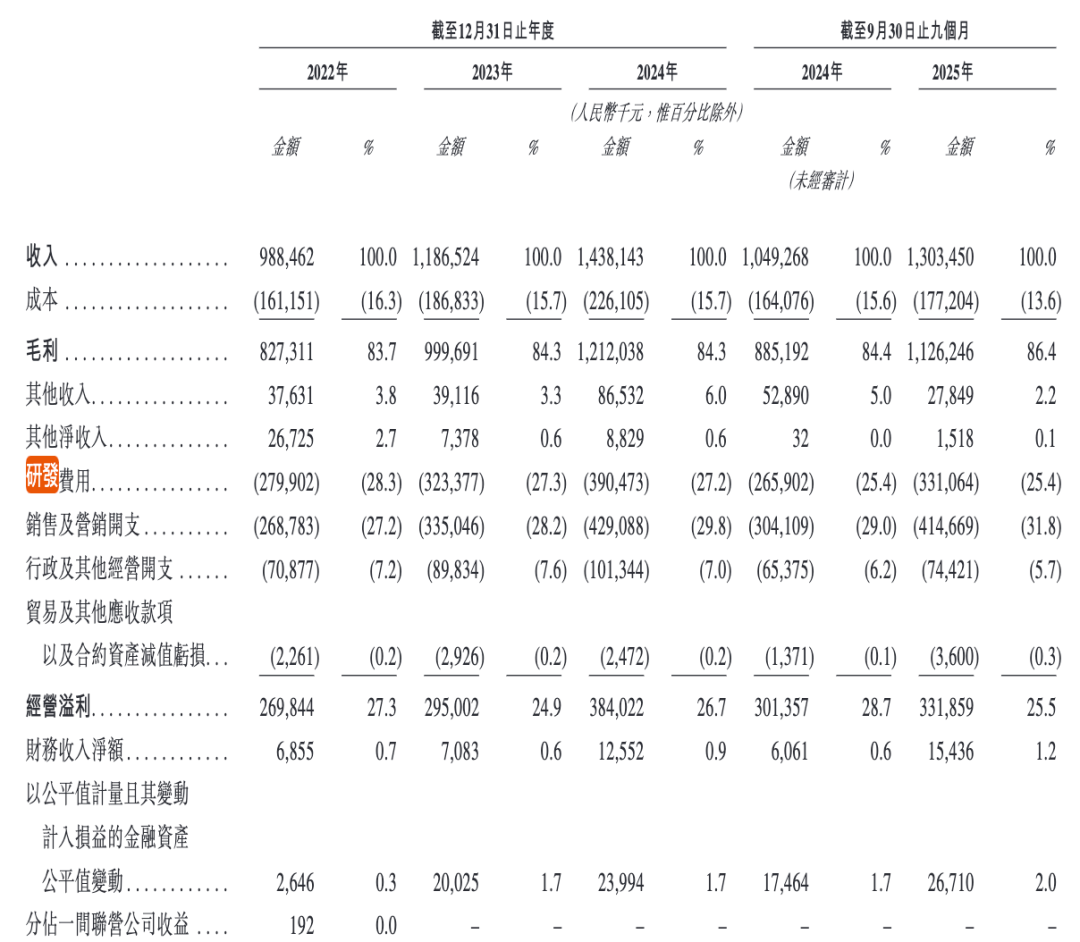 而公司的研发费用率却呈现下降趋势,占收入的比重从2022年的28.3%降至2025年前9个月的25.4%。