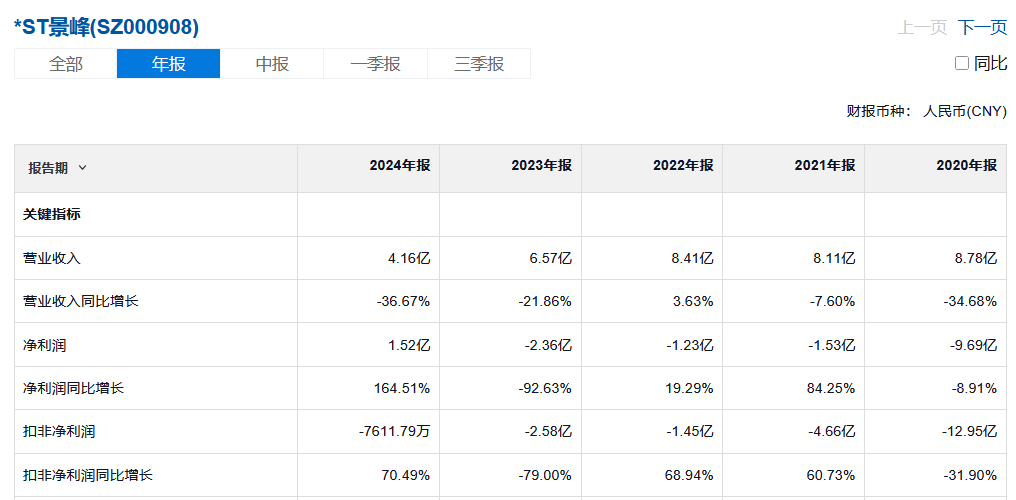 2024年7月,ST景峰最终因无力支付小额货款被供应商申请破产预重整,后由湖南省常德市中级人民法院裁定启动预重整程序。