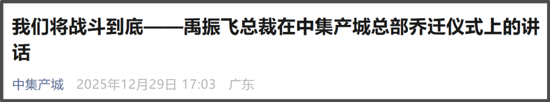 值得关注的是,2025年12月底,“中集产城”官微才披露公司总部乔迁至中集前海国际中心东塔26楼,总裁禹振飞发表演讲“我们将战斗到底”与每一位中集产城人共勉。如今为解决财务危机,该公司不得不亏本出售新总部大楼。