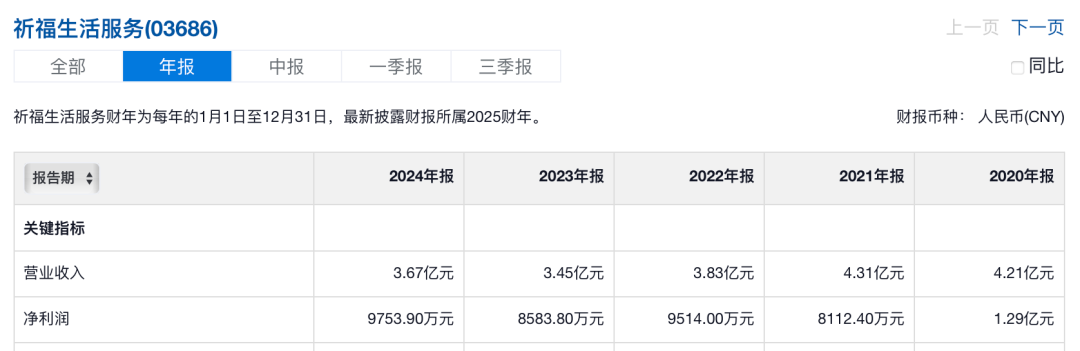 可以对比的数据是,2025年上半年,祈福生活服务总收入仅约1.61亿元,同比下降11.6%;毛利约0.82亿元,同比减少2.4%;期内溢利约0.75亿元,同比增长41.6%。