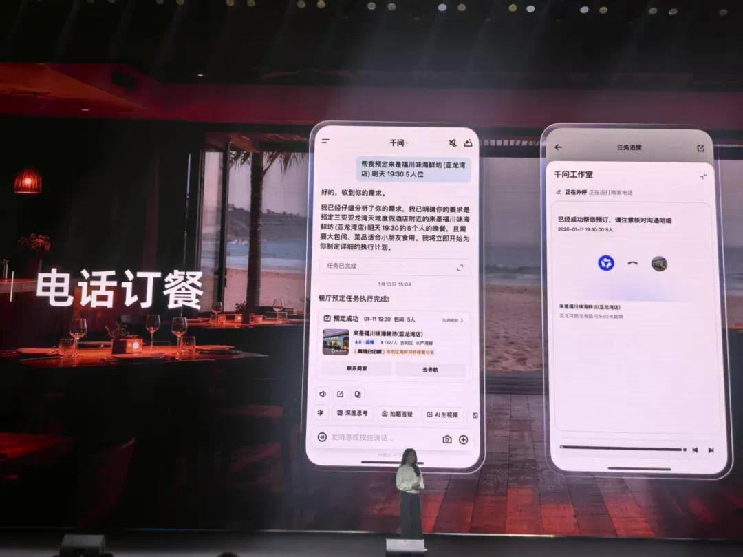 这意味着,手机里的AI大模型首次打破次元壁,在拥有大脑之后,长出了能够触达真实世界的手和脚,就像吴嘉现场用千问点的霸王茶姬,被外卖小哥送到活动现场一样真切,一样让科技圈和投资圈沸腾。