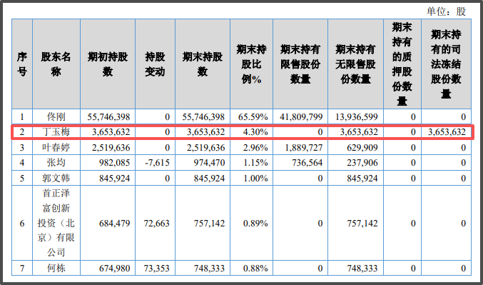 ▲丁玉梅所持股份被悉数冻结。