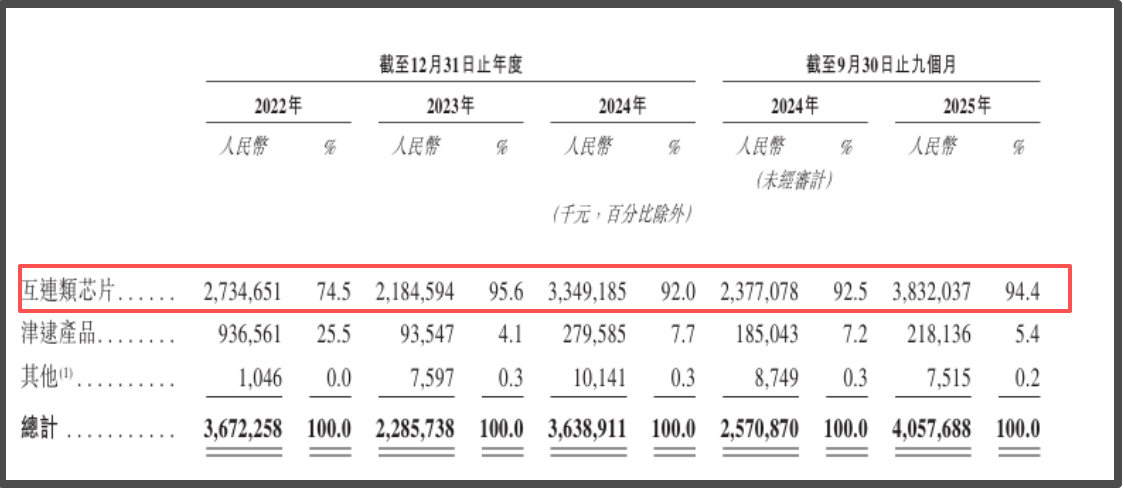 2025年前三季度,澜起科技的互连类芯片贡献营收占比高达94.4%,津逮产品占5.4%;来自境外市场的收入占比达72%,前五大客户收入贡献超76%,显示出对全球AI大客户的深度绑定。