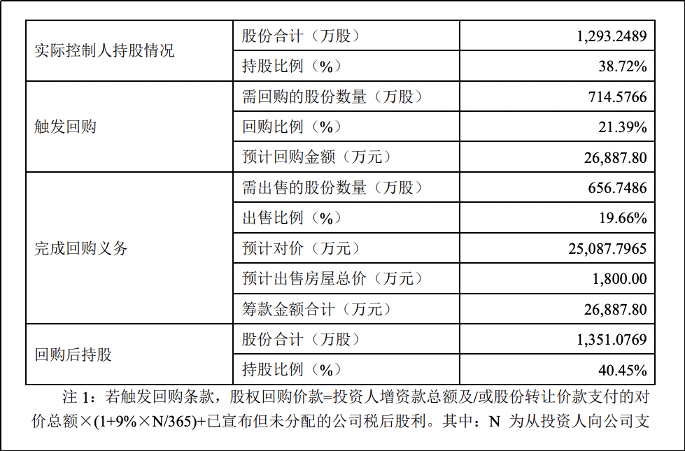 资料显示,三个权利主体的回购条款均有被触发的可能性。