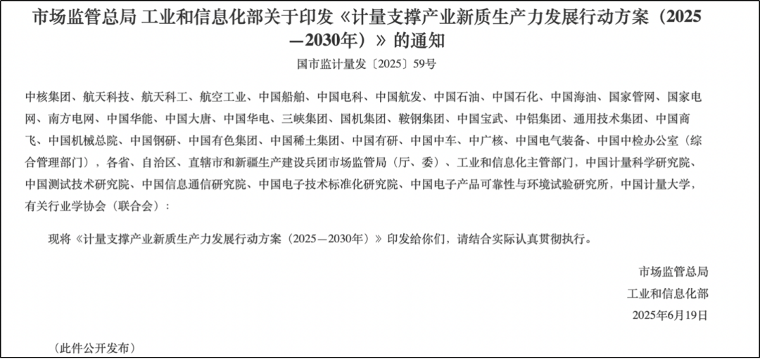 ▲《计量支撑产业新质生产力发展行动方案(2025—2030 年)》