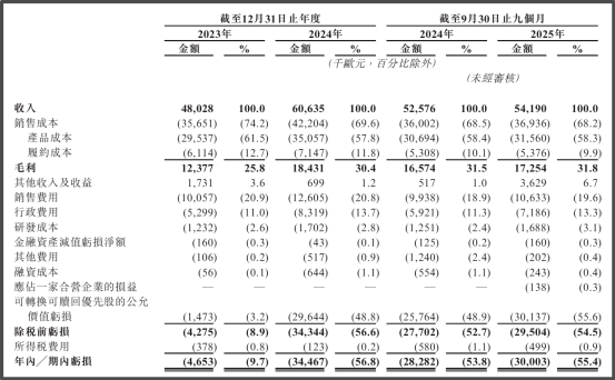 得益于销量的稳步增长,Tenways于2024年实现收入0.61亿欧元,同比增长26.2%;2025年前九个月为0.54亿欧元,同比增长3.1%,增速出现大幅放缓。而2023年、2024年及2025年前九个月,公司毛利率分别为25.8%、30.4%及31.8%,总体呈现攀升的趋势。