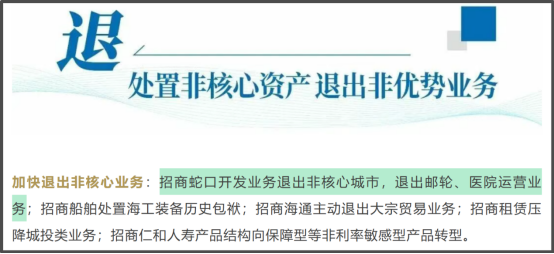 至2026年1月,招商局集团发布了“十四五”高质量发展成果,其中在统筹传统业务“进、退、整、合”方面,招商蛇口被列为“退”的典型案例之一。招商局集团明确表示,招商蛇口开发业务退出了非核心城市,同时退出了邮轮、医院运营业务。