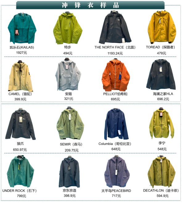 消费者的声音也直接让官方下场当起了产品避雷的测评博主。2025年末,深圳市消费者委员会联合福田区消费者委员会就16款热销单壳冲锋衣开展了冲锋衣商品比较试验,覆盖北面、迪卡侬、骆驼、特步、凯乐石、探路者等国内外主流品牌,样品价格区间为209.75元至1927元。