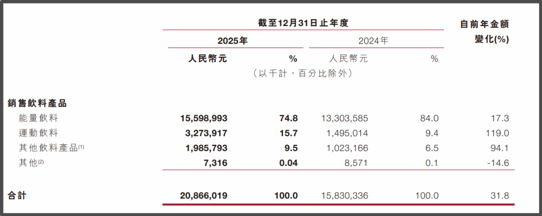 此外,2025年东鹏其他饮料(包括茶饮料、咖啡饮料等)也取得同比94.1%的增长,实现收入19.86亿元,但这一板块毛利率下滑了7个百分点,东鹏饮料在财报中未披露下滑原因。