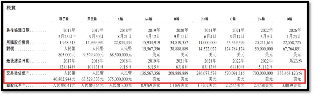 后续的B、C、D轮融资对价依次升至每股1.12美元、2.25美元、3美元。到2026年1月D轮融资完成后,XREAL的投后估值达8.33亿美元(57亿元人民币)。