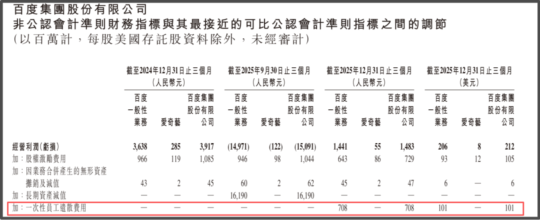 2025年底,百度大裁员上热搜,从后续发布的财报来看,去年四季度百度核心业务员工减少约3100人。为此,公司还支出了7.08亿元的员工遣散费。