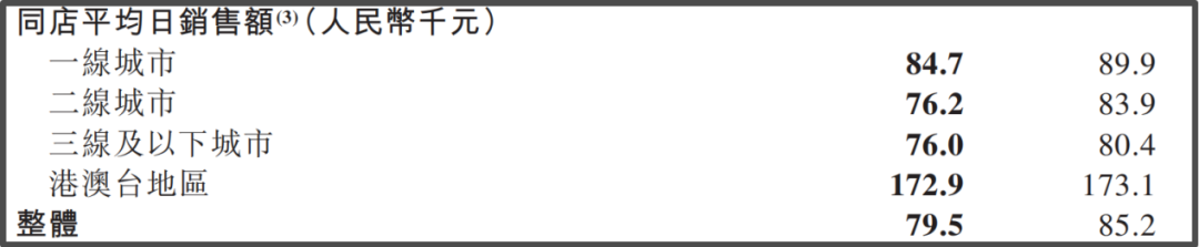▲海底捞同店平均日销售额情况