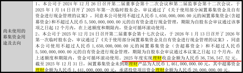 2021年,迪阿股份首发上市募集资金净额达44.44亿元,而截至2025年末累计使用31.04亿元,尚有13.40亿元闲置资金“趴”在账户上。截至2025年12月31日,迪阿股份实现理财收益金额为3674万元。迪阿股份对此回应称,公司购买的是安全性高、流动性好的保本型理财产品,“通过适度现金管理,可以提高公司资金使用效率,获得一定的投资收益,为公司及股东创造更多的投资回报”。