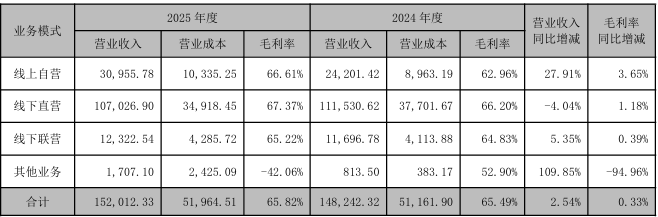 渠道布局方面,迪阿股份2025年全年净关店28家。但进入2026年一季度,公司新开门店11家,关闭4家,净增7家,门店数回升至352家,并完成了78家红金主题门店的升级焕新。此外,2025年公司线下直营收入同比下降4.04%。